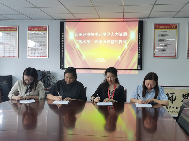 杜娟對經開區人力資源“蓄水池”項目的意義、作用給予認同,對于校企合作的廣闊前景和四方共建的平臺搭建表示支持和期待,希望以合肥學院精工班為合作平臺,在黨建共建、實習實訓、產學研合作、就業招聘等方面加強深度合作。簽約后,四方負責人圍繞校企合作工作推進開展了進一步商討。