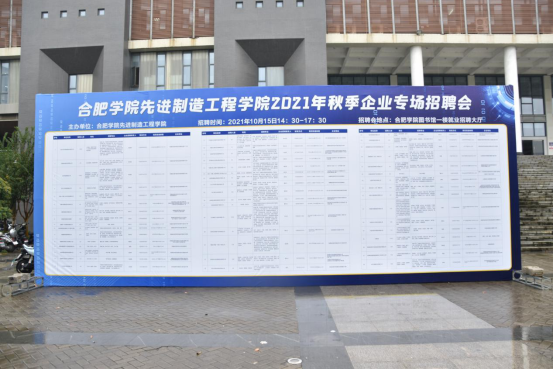 為進(jìn)一步做好我院2022屆畢業(yè)生就業(yè)工作,堅持“就業(yè)第一,以市場為導(dǎo)向促進(jìn)就業(yè)”的指導(dǎo)方針,強化公共就業(yè)服務(wù),促進(jìn)各類人才與市場有效對接,按照疫情防控常態(tài)化要求,我院于2021年10月15日下午14:30在圖書館一樓招聘大廳舉辦先進(jìn)制造工程學(xué)院首屆2021年秋季校園招聘會。本次招聘會在學(xué)生處就業(yè)指導(dǎo)中心大力支持下,先進(jìn)制造工程學(xué)院首屆專場招聘會圓滿完成。我院就業(yè)領(lǐng)導(dǎo)小組多次開會部署工作、積極與相關(guān)部門和用人單位溝通聯(lián)系,進(jìn)行了大量前期準(zhǔn)備工作。本次參會企業(yè)共計48家,其中包括京東方、長鑫存儲、維信諾、得力集團(tuán)、浙江大華、聯(lián)寶電子、泰禾智能科技、安徽巨一科技、海爾智家等,為我校畢業(yè)生提供了200多個崗位,招聘人數(shù)近8000人。