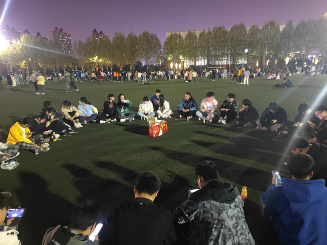 活動(dòng)伊始,本班學(xué)生在張傲老師的帶領(lǐng)下,進(jìn)行了“疫起跑一跑”這一活動(dòng)。井然有序的集體三公里跑步,有力的體現(xiàn)了學(xué)生的團(tuán)結(jié)一致。整齊劃一的號(hào)子,體現(xiàn)了同學(xué)們的抗疫決心和信息。“疫起唱一唱”直接把活動(dòng)氣氛推向了一個(gè)小高潮,學(xué)生圍坐一團(tuán)進(jìn)行著拉歌合唱。聽——“還記得你說家是唯一的城堡,隨著稻香河流繼續(xù)奔跑”周杰倫的“稻香”響徹了整個(gè)操場。在同學(xué)們的歡歌笑語中,活動(dòng)來到了壓軸好戲——“疫起玩一玩”。同學(xué)們以6-8人為一組,進(jìn)行游戲,踩氣球、劇本殺、狼人殺、誰是臥底等游戲如火如荼在操場上進(jìn)行著,很好的釋放了同學(xué)們封校期間的緊張心情。