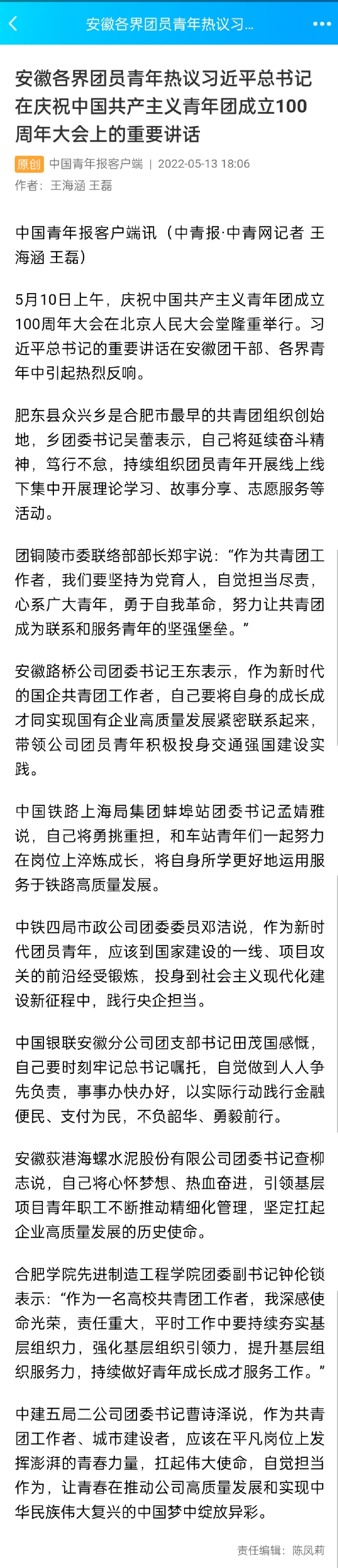 安徽各界團員青年熱議習近平總書記在慶祝中國共產主義青年團成立100周年大會上的重要講話