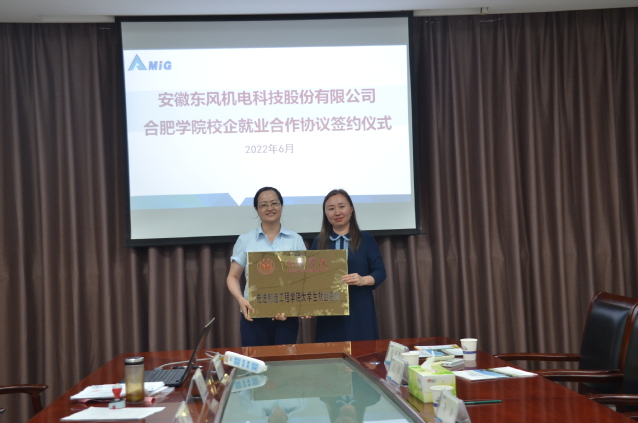 王其東一行與企業代表密切交流后,就建立長期合作關系、共同培養人才等方面達成一致意見,簽署院企就業合作協議并授予“合肥學院先進制造工程學院大學生就業基地”牌匾。