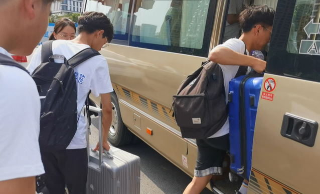 團隊成員走上了前往目的地的車輛