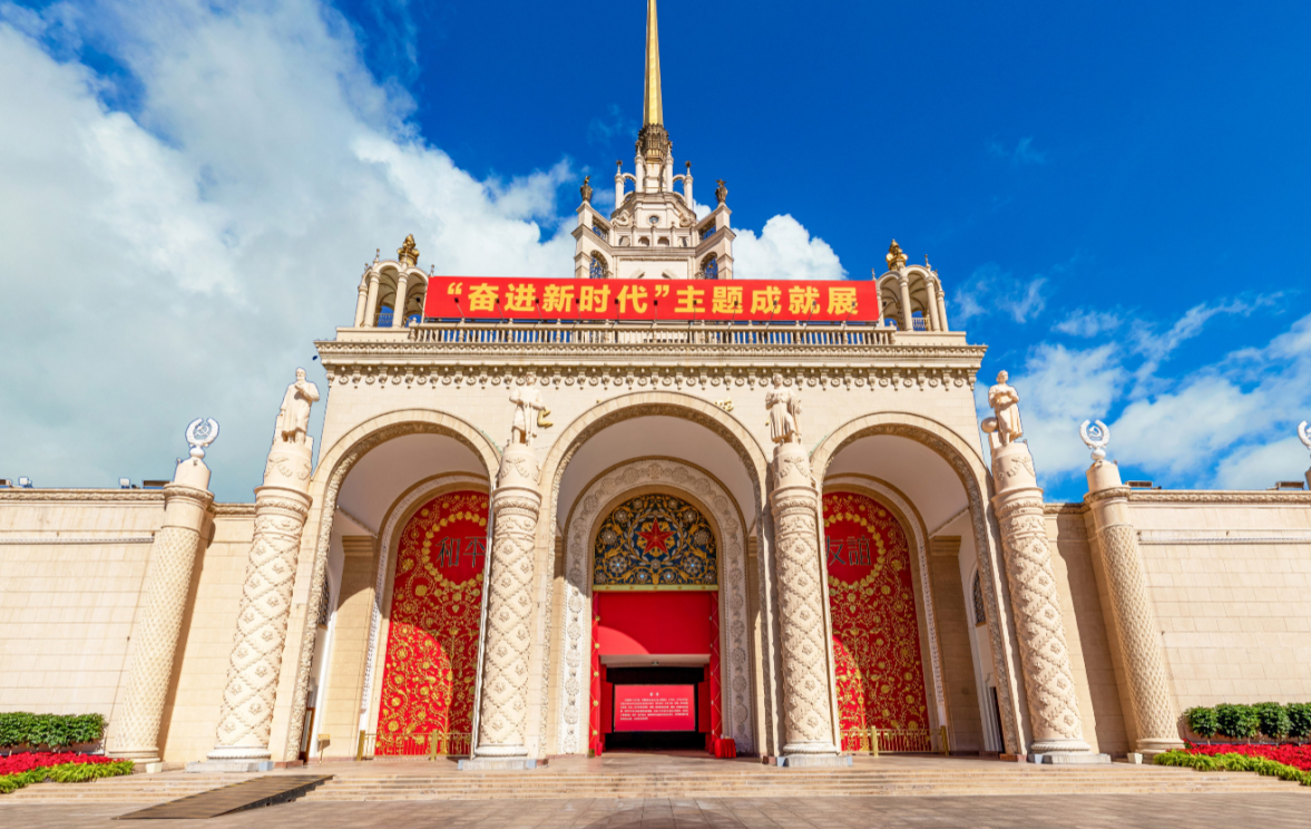 奮進新時代”主題成就展以黨的十八大以來黨中央治國理政為主線,聚焦新時代10年黨和國家事業的偉大成就、偉大變革。展覽設序廳、中央綜合展區、地方展區、展望展區、室外展區和互動展區6個展區,運用圖片、實物、模型等6000多項展覽要素,角度豐富、內涵飽滿。從室外展區到序廳,從中央綜合展區到地方展區,一件件模型、一幅幅圖片、一段段視頻,無不彰顯祖國的日益強大