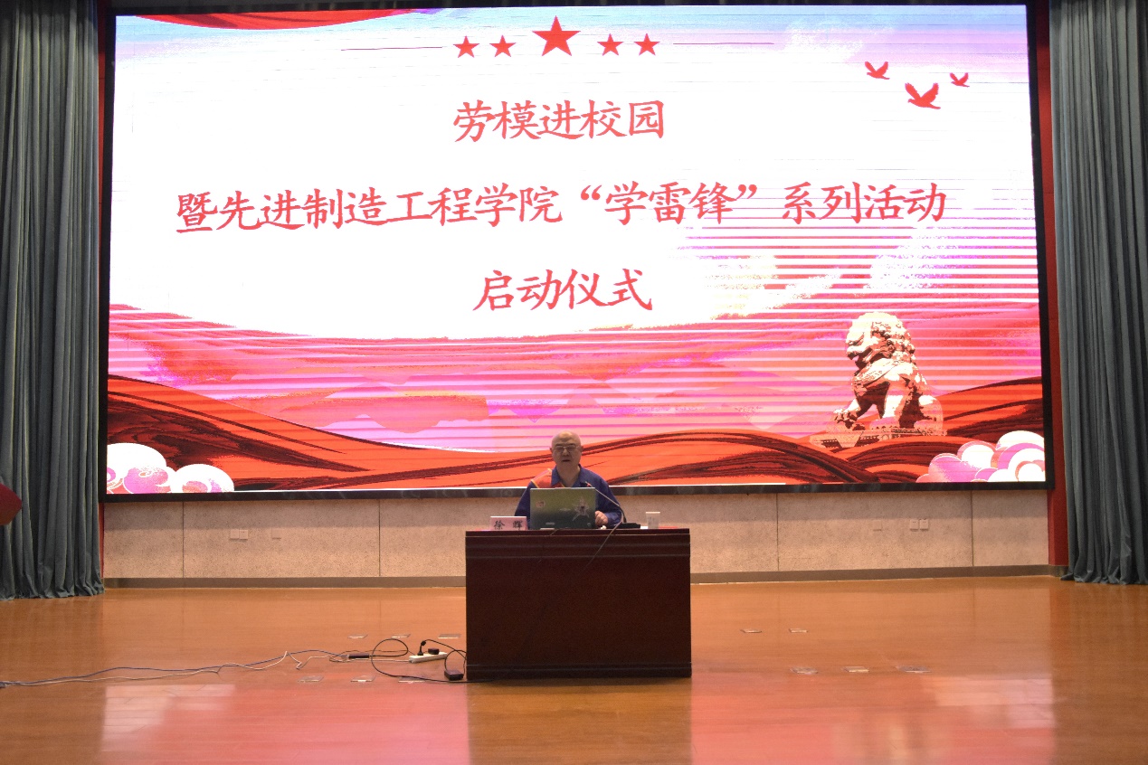為學習貫徹習近平總書記對于深入開展學雷鋒活動的重要指示精神,不斷發展壯大學雷鋒志愿服務隊伍,讓學雷鋒在新時代青少年中蔚然成風。2023年3月2日中午12點30分,合肥學院先進制造工程學院第四期學生骨干培訓班第二次授課在圖書館A報告廳順利舉行。此次活動的主題為“勞模進校園暨‘學雷鋒’系列活動啟動儀式”,邀請了全國勞動模范徐輝到場為學干班的學員們進行第二次授課。