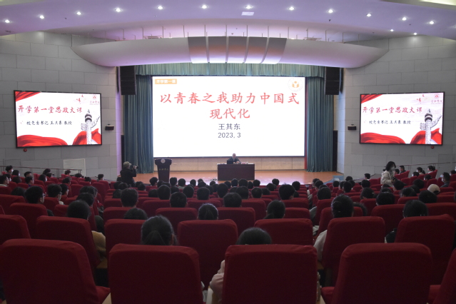 為深入學習宣傳貫徹習近平新時代中國特色社會主義思想和黨的二十大精神,引導廣大青年明確努力方向和奮斗目標,3月9日上午,校黨委書記王其東以“中國式現代化之路”為題在學術報告廳A廳為先進制造工程學院黨員、入黨積極分子和青馬班學生講授“開學第一課”。先進制造工程學院黨委書記杜娟主持講座,副書記蔡靈美、機制學生黨支部威力旺和智能制造學生黨支部書記劉罡等老師參加講座。各學院部分學生黨員代表共三百余人共同聆聽。