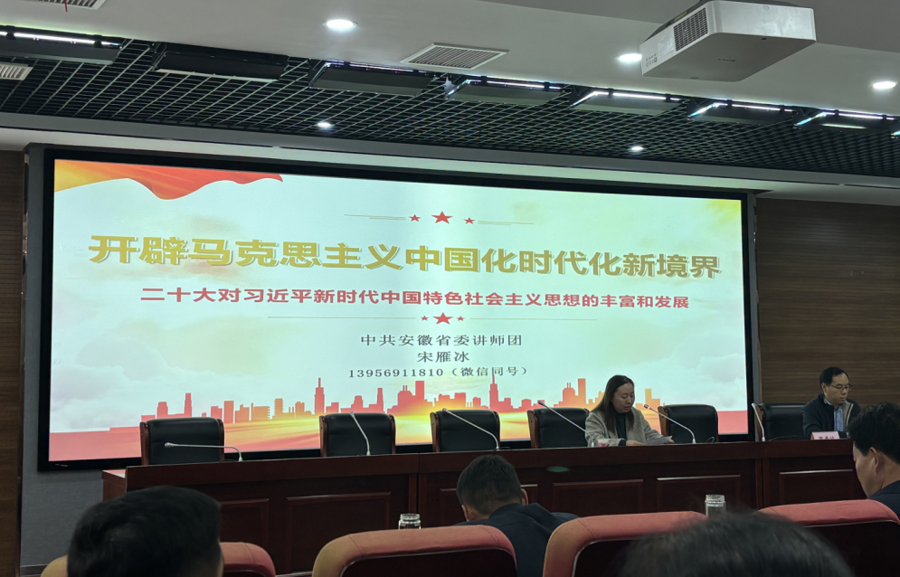 宋雁冰以《開辟馬克思主義中國化時代化新境界》為主題,從“多維闡釋習近平新時代中國特色社會主義思想的歷史地位和指導意義”“科學概括習近平新時代中國特色社會主義思想的主要內容和理論體系”“深刻揭示習近平新時代中國特色社會主義思想推進理論創新的內在機理和根本途徑”“深入回答習近平新時代中國特色社會主義思想的三個重大時代課題”四個方面對黨的二十大報告做出了深刻解讀,深入淺出地論述了黨的二十大對習近平新時代中國特色社會主義思想的豐富和發展。