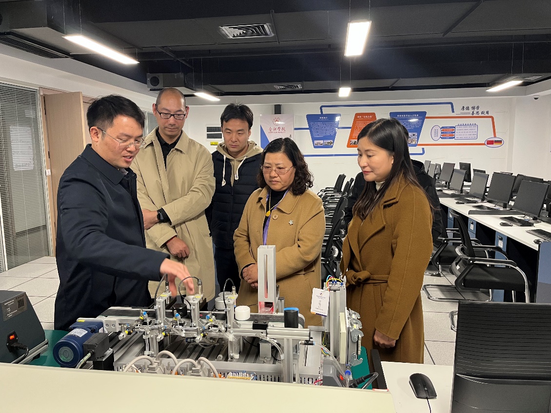 會上,雙方圍繞產教融合、專業建設、專業認證、實驗室建設、學生競賽等方面展開了交流討論,會后金飛翔陪同來訪人員參觀了智能制造產教融合實踐中心。