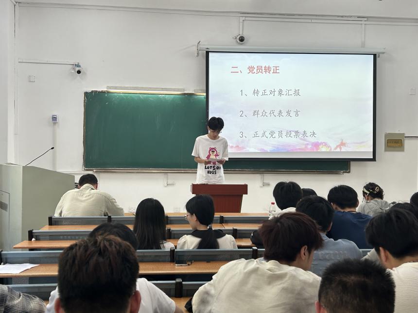 528日,自動化學生黨支部2024年上半年黨員轉正大會在36108教室舉行,教師黨員張傲、支部學生黨員和群眾代表參會。學生兼職副書記王旖薇同志主持會議。