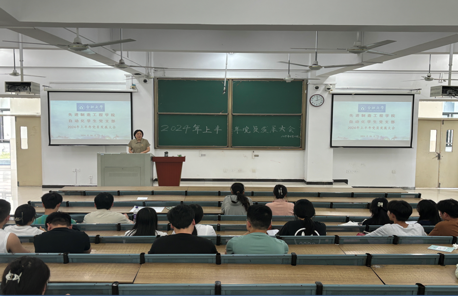 先進制造工程學院自動化學生黨支部2024年上半年黨員發展大會于612日在382階梯教室舉行,學院黨委副書記蔡靈美、支部書記梅志強、全體黨員及群眾代表參加此次會議。
