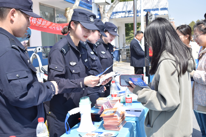 現場設立多個反電詐咨詢展臺,擺放“反詐口訣”“網絡防騙安全指南”等宣傳展板。志愿者為到場學生發放反詐宣傳折頁并講解相關反詐知識,公安民警圍繞“游戲充值、社交軟件、冒充銀行客戶、非正規渠道校園貸”等校園電信詐騙常見類型進行宣講。