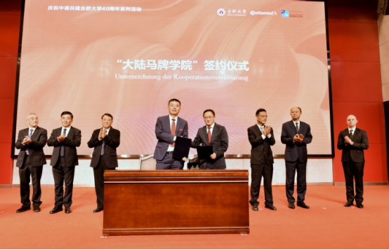 On October 22, 2025, the celebration marking the 40th anniversary of the joint establishment of Hefei UniversityHFU by China and Germany, as well as the 10th anniversary of the dual-system “Continental Class” program was held at Hefei University.  Luo Yunfeng, Mayor of Hefei City, Wang Xiaoji, General Manager of Continental Tires (China) Co., Ltd., and HFU principals attended the event, who jointly signed the agreement and unveiled the plaque for the Continental Tires Academy.