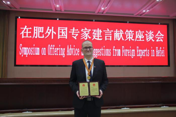 On the morning of December 16, 2020, Hefei Municipal Government holds a ceremony of the Third Hefei Friendship Award for foreign experts in Hefei. Yu Aihua, Secretary of Hefei Municipal Party Committee, and Ling Yun, Mayor of Hefei, award medals and honorary certificates to those experts. Prof. Dr. Thomas Weise, a German professor of Hefei University, is awarded the Hefei Friendship Award.