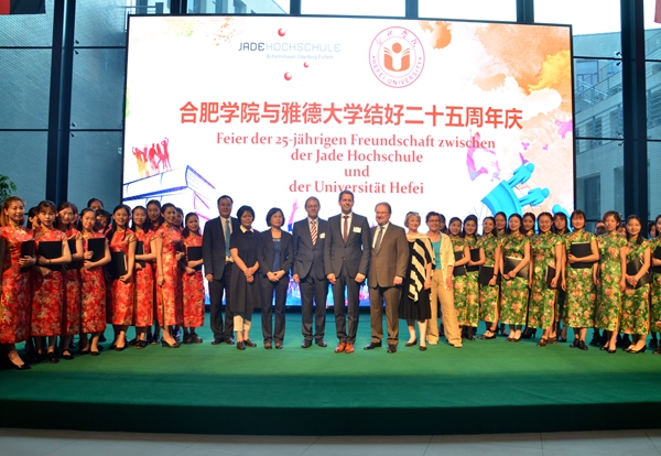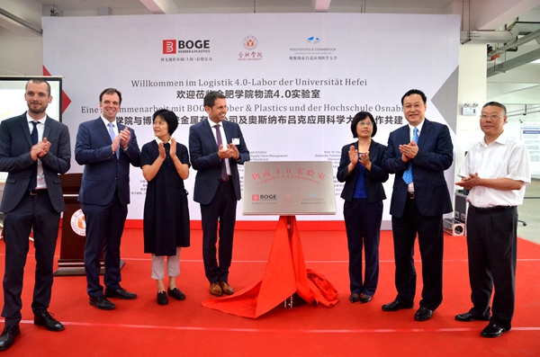On May 26, an economic delegation from Lower Saxony, Germany, led by Olaf Lies, minister of the Economic, Employment and Energy Department of the State, visited Hefei University to attend the opening ceremony of Sino-German “Logistics 4.0” laboratory and the 25th anniversary of the establishment of partnerships between Jade University of Applied Sciences and Hefei University. Attendees of the events above include Zhang Lifang, Deputy Director of the Foreign Affairs Office of Anhui Province, Wu Chunmei, Deputy Mayor of Hefei Municipality, and Ding Yuhong, Director of the Foreign Affairs Office of the Department of Education of Anhui Province.
