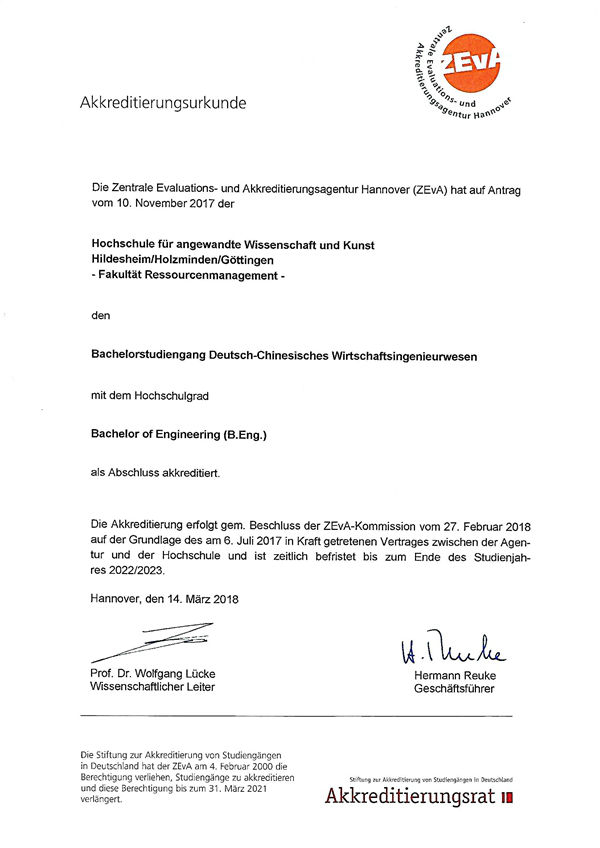 In July 2017, HFU and one of her cooperative partners Hildesheim/Holzminden/G?ttingen University of Applied Sciences applied to the German central assessment and certification authority for the professional certification. On the basis of preliminary material audit, experts from German authoritative organizations, carried out the evaluation on November 23, 2017.