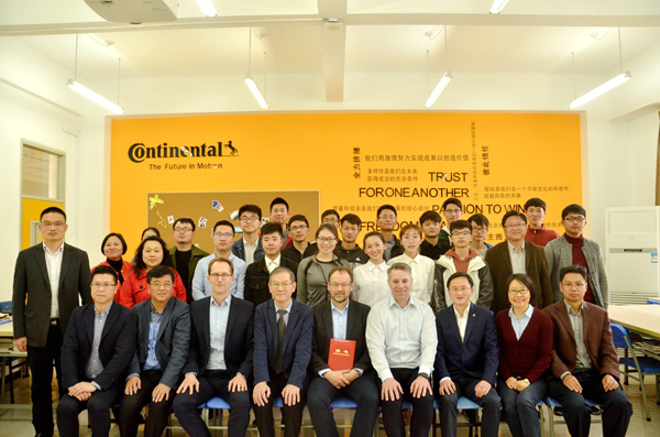 After the signing ceremony, guests from the “Continental” communicate with students in the Conti Class(HFU), who are introduced to the requirements for studying in Germany, and encouraged to work harder.