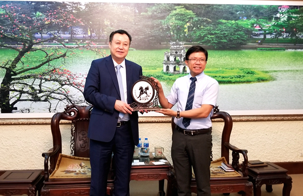 Afterwards, Chair Cai and the delegation visit VNU University of Social Sciences and Humanities, and meet with its vice rector, Professor Hoàng Anh Tu?n. The heads of both sides intend to conduct specific cooperation in linguistic and cultural communication, tourism management and basic education, consent to make specific plans for the communication between teachers and students, and the culture exchanges.