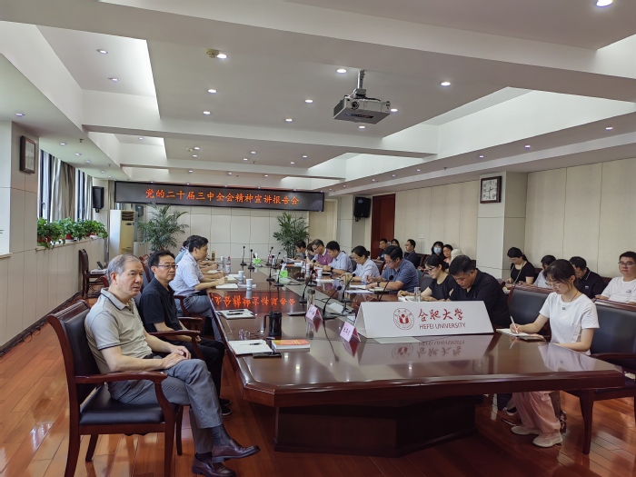 8月6日,省委宣講團成員、省委教育工委書記、省教育廳廳長錢桂侖在我省教育系統開展學習貫徹黨的二十屆三中全會精神宣講。按照統一部署,合肥大學設立了分會場組織收看。校黨委書記王其東,黨委委員、紀委書記、省監委駐合肥大學監察專員吳功福,相關部門負責人、思政課教師代表、學生代表共30余人參加。
