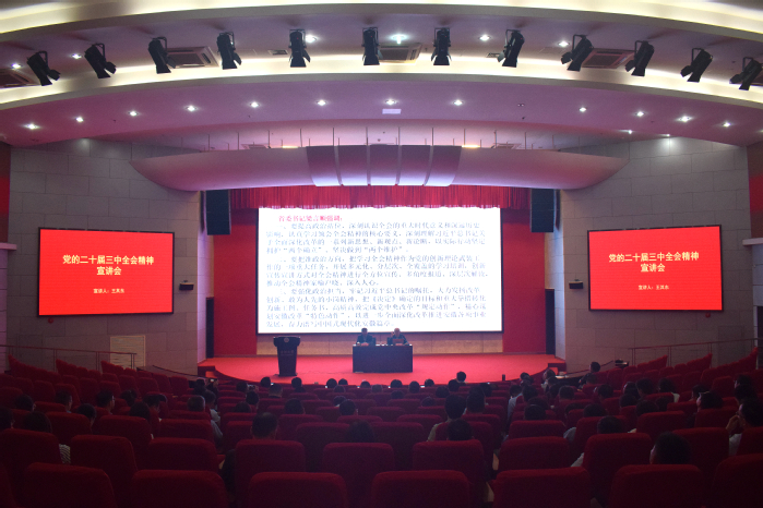 10月15日,我校舉辦學習貫徹黨的二十屆三中全會精神宣講會,校黨委書記王其東作宣講報告,副校長白義香主持會議。校領導、全校處以上干部參加報告會。