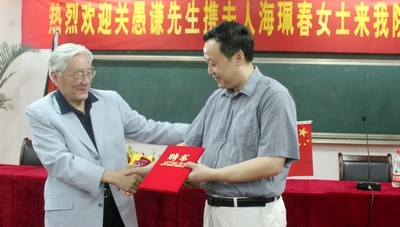 據悉,關愚謙先生為德國漢堡大學教授、文學博士、記者、作家,掌握中英德俄等多種語言、現任中德文化交流協會會長、上海對外文化交流協會理事等職務。同時,他也接受過中央電視臺第一頻道、浙江電視臺等多家媒體的采訪,并發表過《中國文化指南》《德國萬象》等著作。其妻子海佩春是德國作家、小說家、漢學家,為中德友誼做出了重要貢獻。(院新聞中心學生記者 張夏云 方雨琦 傅超群)