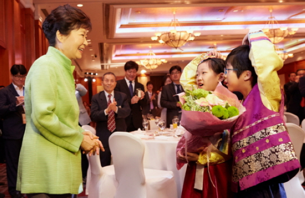 樸槿惠與260余名韓裔、韓僑代表舉行午餐懇談會(圖片轉自網絡)