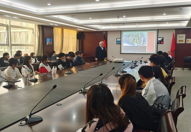 1025日,國際建筑節能領域知名學者、合肥大學客座教授、國家友誼獎以及黃山友誼獎獲得者Hans-Peter Leimer教授應邀到訪我院,為經濟工程專業以及中德物流專業師生做了一場主題為The CO2 neutral City of the Future的專題講座。
