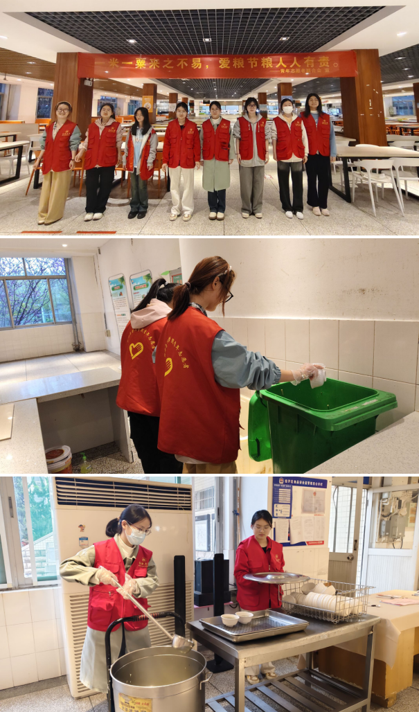 在就餐區(qū)域,志愿者們不僅暖心地為同學們打湯,還積極倡導“光盤行動”。當發(fā)現(xiàn)有同學取餐過多時,他們會溫馨提醒適量取餐,避免浪費。在志愿者的共同努力下,食堂的剩菜剩飯明顯減少,“光盤”逐漸成為校園新風尚。此外,志愿者們還不斷提醒同學們文明用餐,不大聲喧嘩,并在就餐后自覺清理桌面、歸還餐具。這些細致入微的舉動讓食堂環(huán)境更加整潔,秩序井然。