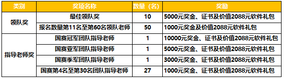所有領隊老師、指導老師均可獲得價值2088元的軟件禮包一份。