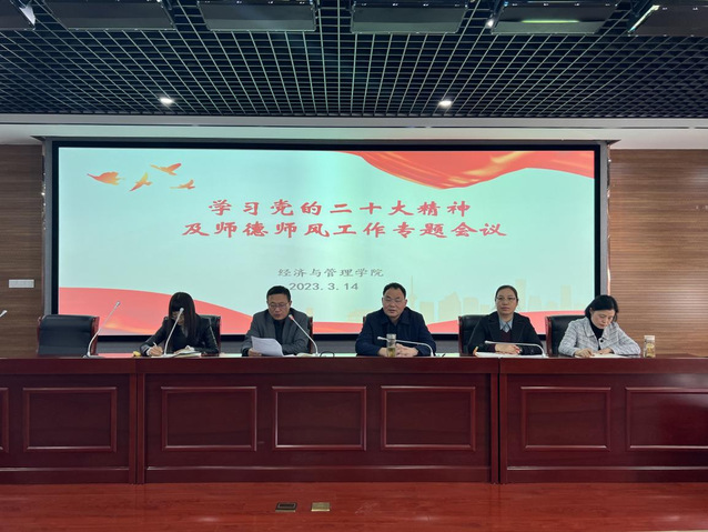 經(jīng)濟(jì)與管理學(xué)院組織學(xué)習(xí)黨的二十大精神及師德師風(fēng)工作專題會(huì)議