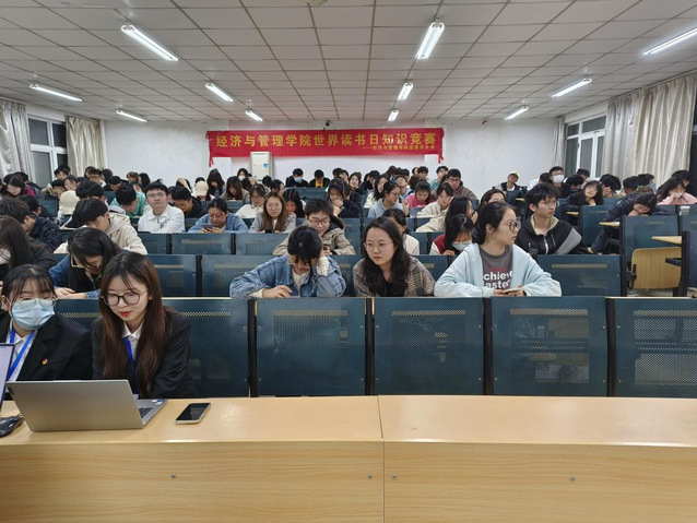為提高同學們的知識素養,加強我院學風建設,營造勤奮讀書、認真學習、奮發向上的文明校園文化,2023年4月22日晚,經濟與管理學院世界讀書日知識競賽于我校一期博學樓B座107教室順利開展。