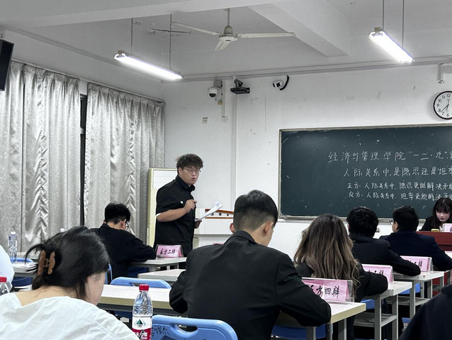 為豐富校園文化生活,鍛煉我院學生的思辨能力,2023年11月2日晚,經濟與管理學院“一二·九”辯論賽決賽在一期六棟305教室舉行。