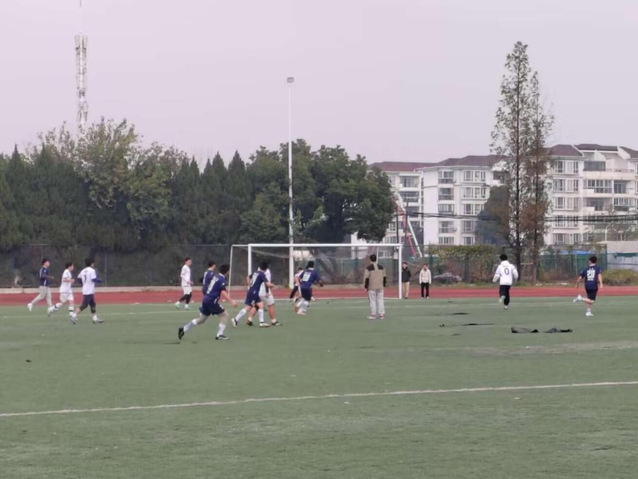 比賽開始前,球員們進行了充分的熱身運動。熱身結束后,伴隨著裁判哨聲,比賽正式開始。球員們開始在操場上你追我趕,爭奪對手腳下的足球。我院隊員默契配合進行了一個個完美的鏟球、傳球和一波波漂亮的防守,率先拿得一分。球員之間專業的手勢和話語的交流,使得他們之間配合更加緊密。場外的觀眾也發出陣陣掌聲和稱贊聲。很快上半場結束。