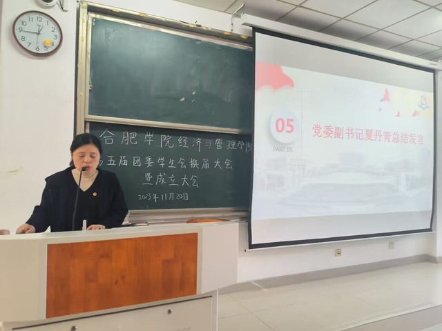 11月20日,合肥學院經濟管理學院第五屆團委學生會暨成立大會于一期五棟101教室順利舉行。經濟與管理學院黨委副書記夏丹青、經濟與管理學院團委書記姚璇、經濟與管理學院第四屆成員以及第五屆學生會全體成員參加此次大會。