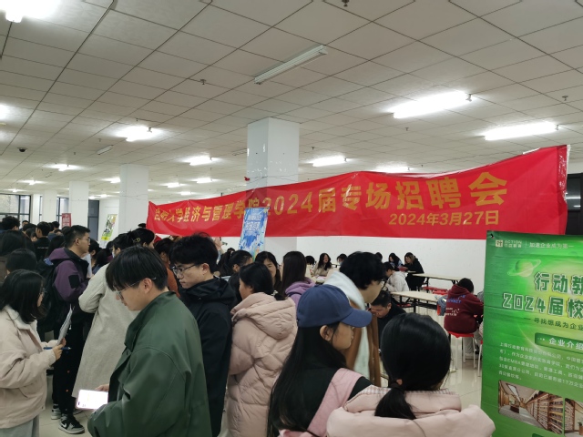 2024年3月27日,合肥大學經濟與管理學院在圖書館一樓招聘大廳順利舉辦2024屆春季專場招聘會,來自上海、江蘇、浙江、福建、安徽等24家用人單位參會,提供崗位87個,915個人才需求,涵蓋金融投資、物流供應鏈、財務會計、經濟貿易等重點專業需求。