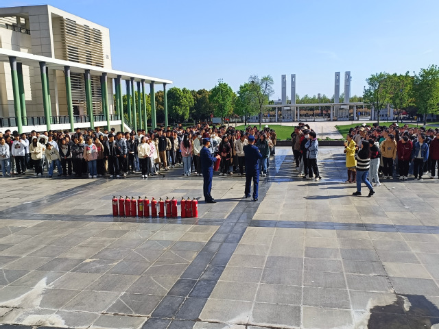 活動(dòng)開始,學(xué)院模擬了火警報(bào)警信號(hào)。警報(bào)響起后,4號(hào)教學(xué)樓的全體師生根據(jù)指示快速有序地疏散到教學(xué)樓外開闊的地方,消防志愿者們維持著現(xiàn)場(chǎng)秩序。隨后單指導(dǎo)員為我院師生講解關(guān)于火災(zāi)預(yù)防、滅火技巧、災(zāi)害應(yīng)對(duì)等方面的知識(shí),并演示、講解了滅火器的使用方法,現(xiàn)場(chǎng)師生在指導(dǎo)員們的指揮下使用滅火器進(jìn)行滅火訓(xùn)練,提高了實(shí)踐操作能力。