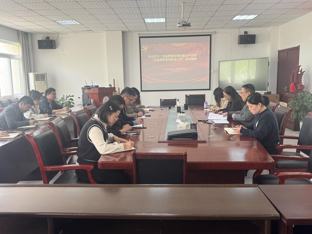 經管學院傳達學習“2025年全省教育系統全面從嚴治黨工作視頻會議”和“全省高校思想政治工作會議”精神