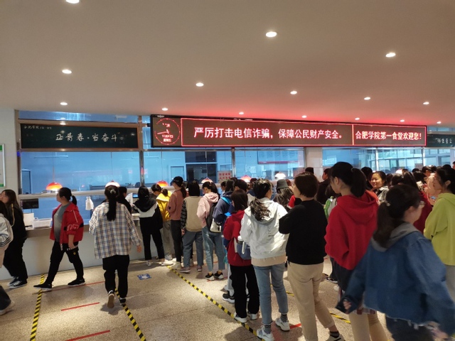 據(jù)了解,一期校園僅有一個(gè)食堂,就餐高峰期學(xué)生排隊(duì)候餐時(shí)間長(zhǎng),校領(lǐng)導(dǎo)對(duì)此高度重視。公管處積極行動(dòng),通過調(diào)整功能窗口、組合套餐、增加售賣人員等方式,大幅度縮短學(xué)生的候餐時(shí)間,減少排隊(duì)擁堵的情況。此外,我校團(tuán)學(xué)組織也積極開展豐富多樣的“光盤行動(dòng)”系列活動(dòng),在學(xué)生群體中取得了良好的反響。
