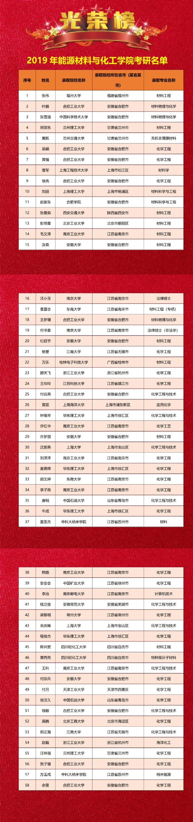 材化學院2019年考研信息