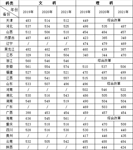 合肥學(xué)院近三年各省非藝術(shù)類專業(yè)最低錄取分?jǐn)?shù)線(2019-2021年)