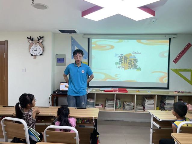 “太陽(yáng)下山明早依然爬上來(lái),花兒謝了明天還是一樣的開(kāi)……”音樂(lè)一響,孩子們就跟著志愿者一同打著節(jié)拍,輕輕哼唱。為了讓孩子們更好的學(xué)習(xí)這首歌曲,志愿者給他們講解了歌曲的創(chuàng)作背景以及歌曲含義。“這首歌是1939年,王洛賓在搜集新疆民歌時(shí)發(fā)現(xiàn)的,而后他將其翻譯成漢語(yǔ)。歌曲傳唱至今,經(jīng)久不衰,深受人們喜愛(ài)。歌曲采用新疆傳統(tǒng)的小調(diào)的形式,曲調(diào)輕快。歌詞中的“別得那”在維語(yǔ)中是“小鳥”的意思。”在志愿者聲情并茂地講解中,一個(gè)熱情活潑的民族呈現(xiàn)在孩子們面前,眼前仿佛出現(xiàn)一位美麗的維吾爾族姑娘伴隨著輕快的節(jié)奏,跳起動(dòng)人的薩瑪舞。課程結(jié)束,志愿者表示,希望通過(guò)這首歌在帶孩子們欣賞民族文化的同時(shí),告訴他們年華易逝,應(yīng)當(dāng)珍惜時(shí)間。