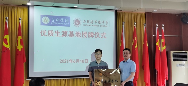 6月18日,合肥學院旅游與會展學院院長劉力帶領旅游管理系、會展經濟與管理系教師赴長豐縣,與長豐縣下塘中學開展優質生源基地共建活動。