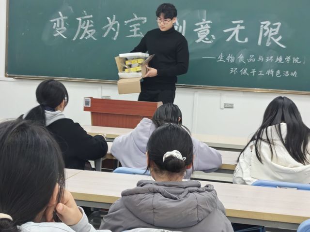 為增強學生的環保意識,強化綠色生活理念,合肥大學生物食品與環境學院于2024121日星期日下午四點半,在生化樓209教室舉行了一場以“變廢為寶,創意無限”為主題的環保手工特色活動。
