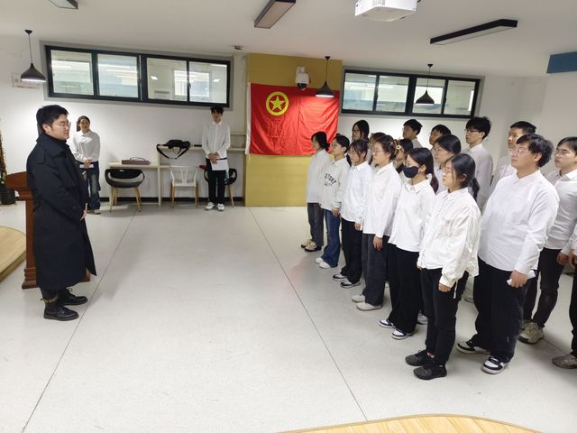 新團員代表張宗宇發言,他表示將嚴格要求自己,努力學習,提升自我,以實際行動踐行入團初心。優秀老團員代表肖一瑤也在儀式上發言,他分享了在團內的成長經歷和收獲,鼓勵新團員積極參與團組織活動,培養社會責任感和團隊協作精神,他期待與新團員們共同成長進步。緊接著,楊林向新團員們表示祝賀,并提出殷切期望,希望新團員們能夠認識到身份上的轉變,堅定自身理想信念,積極學習黨的科學理論知識,胸懷理想、增長才干,在新時代展現新作為。