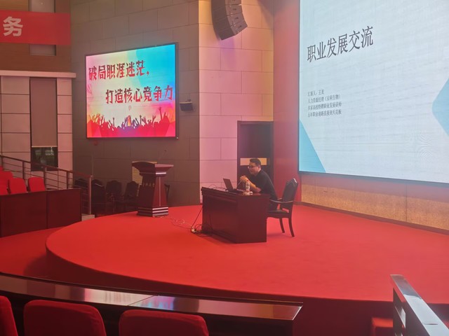 2025年5月13日晚6時30分,生物食品與環境學院“破局職涯迷茫,打造核心競爭力”主題講座于圖書館A報告廳舉行?;顒佑蓪W院黨委副書記晉松、學生工作辦公室主任陳玲主持,特邀安徽安科生物工程(集團)股份有限公司人力資源經理王龍擔任主講,為全體大三學生及生物制藥專業新生帶來一場職業發展導航盛宴,現場反響熱烈。
