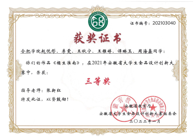 2021年安徽省大學生食品設計創新大賽