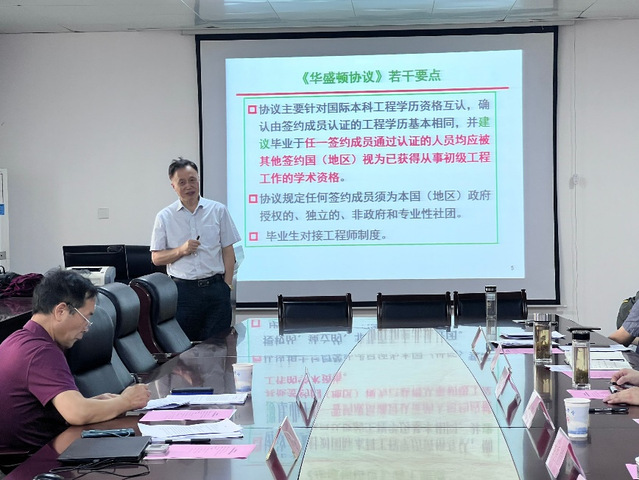 阮班鋒院長致歡迎辭,儲忠處長把我校工程教育認證開展情況作了發言,并表示工程教育認證是為專業更好地發展。
