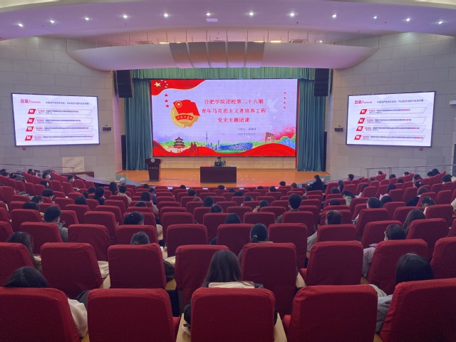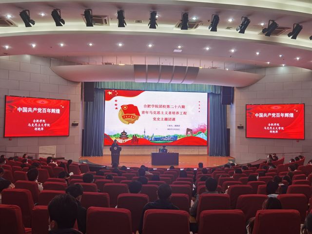 今年是中國共產黨成立一百周年。合肥學院積極響應在全黨開展黨史學習教育的號召,面向全校黨員師生和團員青年全面鋪開黨史學習教育,廣泛開展“主題黨日”、“主題團日”和各類學習報告會。2021年3月22日,我校第二十六期“青年馬克思主義者培養工程”培訓班第二次培訓報告會開講,邀請馬克思主義學院院長胡艷萍作為主講人,報告的主題是:中國共產黨百年輝煌。一百二十余名學生骨干到場聆聽,校團委副書記李妍妍主持會議。