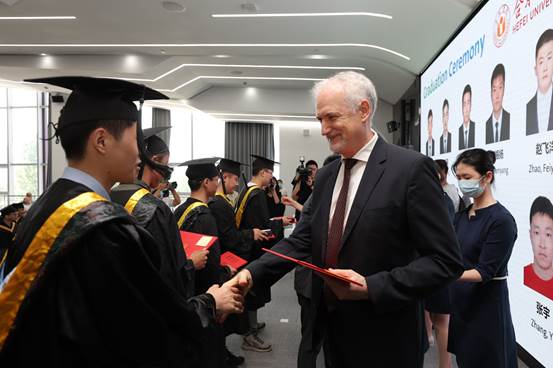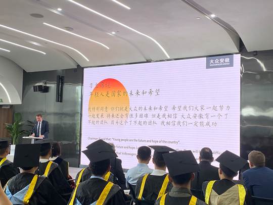 2022年6月16日上午,我校和大眾集團合作培養的首批“種子工程師”順利畢業。大眾中國執行副總裁傅勤彥先生、校長吳春梅教授、大眾安徽首席執行官葛皖鏑博士、首席制造官施耐德先生、首席技術官呂爾曼博士、首席人力資源官邵劍先生以及我校相關職能部門和學院負責人出席在大眾安徽舉行的畢業典禮。