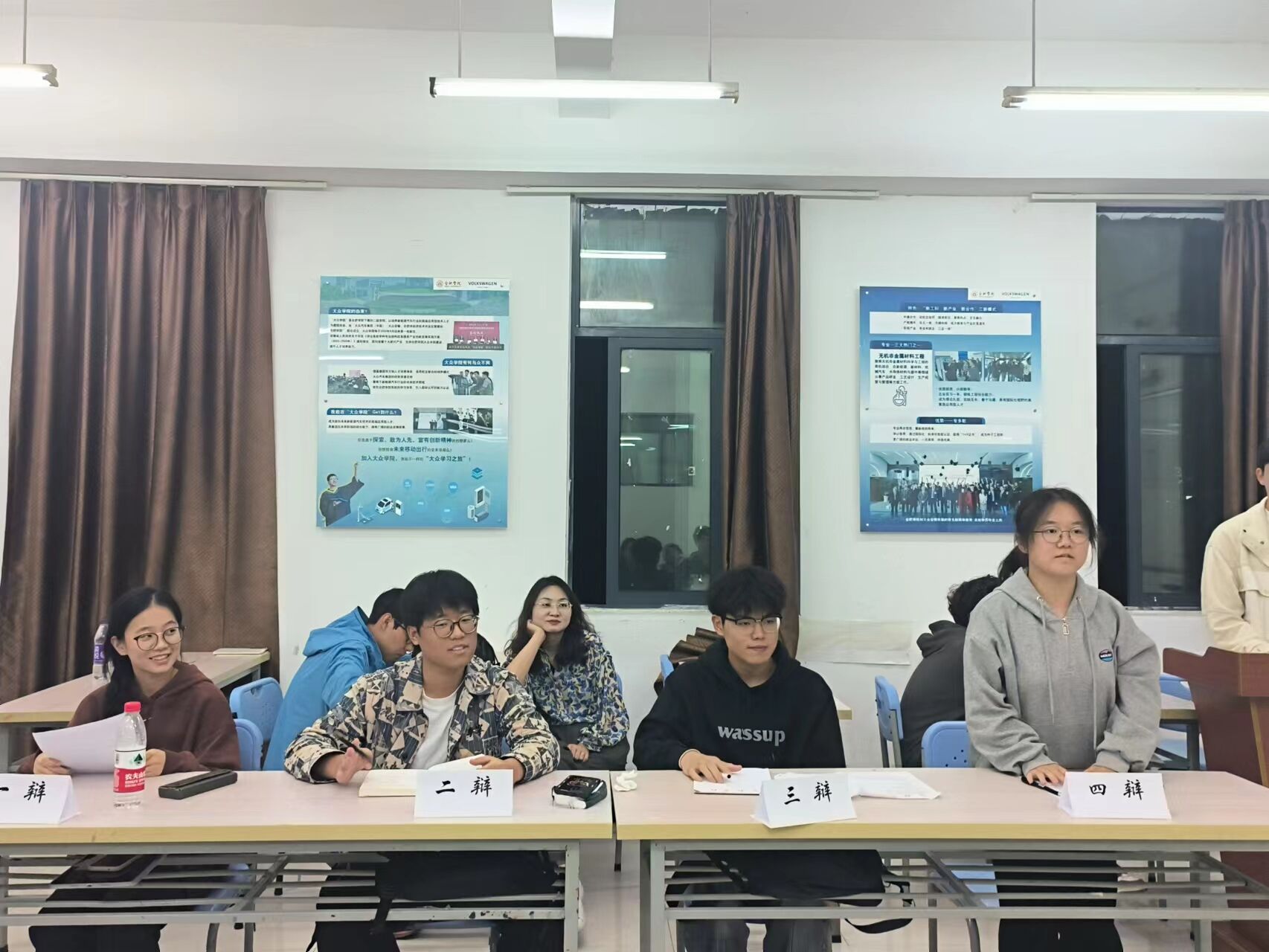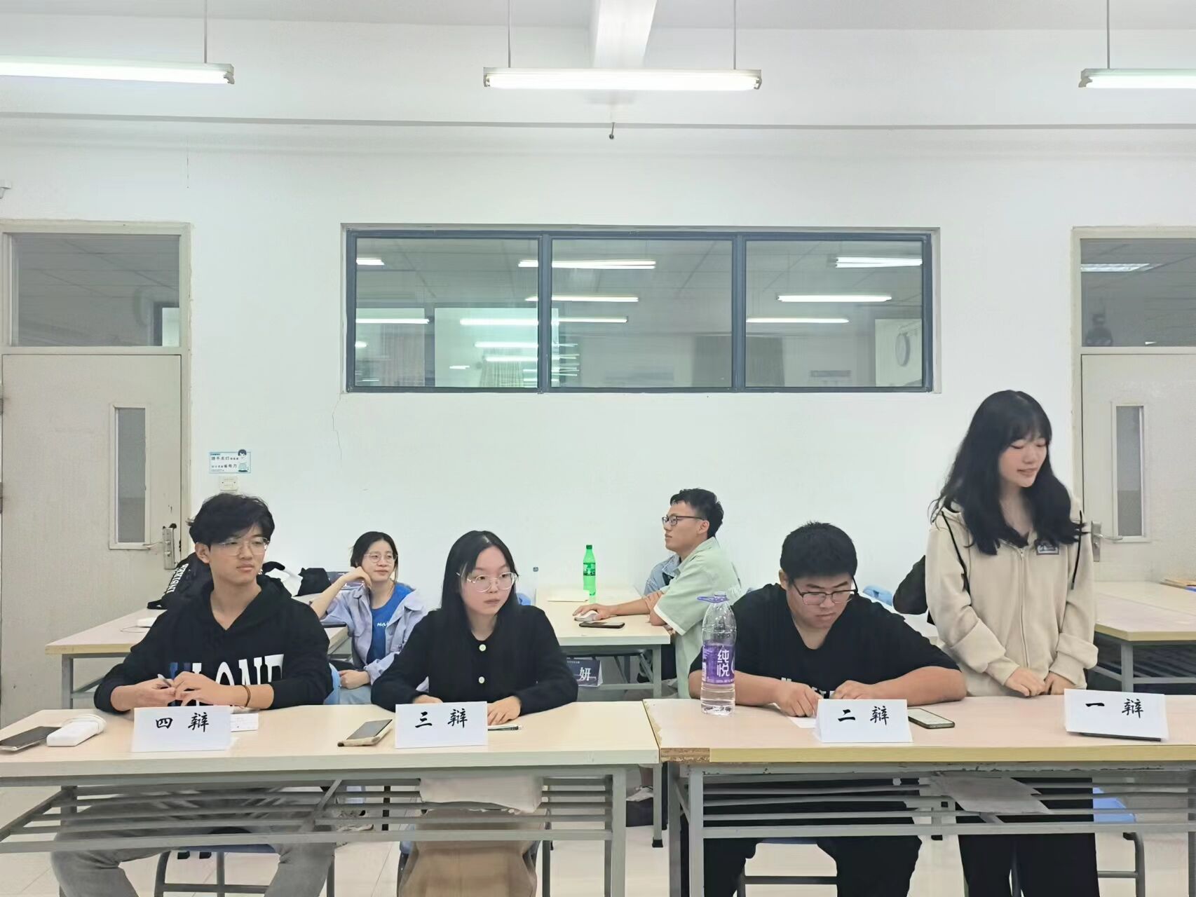 決賽由合肥大學(xué)校辯隊(duì)隊(duì)長(zhǎng)、經(jīng)濟(jì)與管理學(xué)院辯論隊(duì)隊(duì)長(zhǎng)桂欣蕾、經(jīng)濟(jì)與管理學(xué)院辯論隊(duì)副隊(duì)長(zhǎng)毛志煒、先進(jìn)制造與工程學(xué)院資深辯手李威和特邀嘉賓李璐擔(dān)任評(píng)委。蒞臨決賽的有大眾學(xué)院周冉老師和陳巖老師。