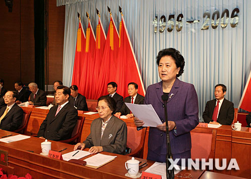 全國政協副主席、中央統戰部部長劉延東宣讀中共中央總書記、國家主席、中央軍委主席胡錦濤的賀信