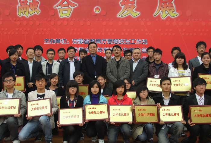 等領(lǐng)導(dǎo)與安徽省大學(xué)生通訊社學(xué)生代表合影